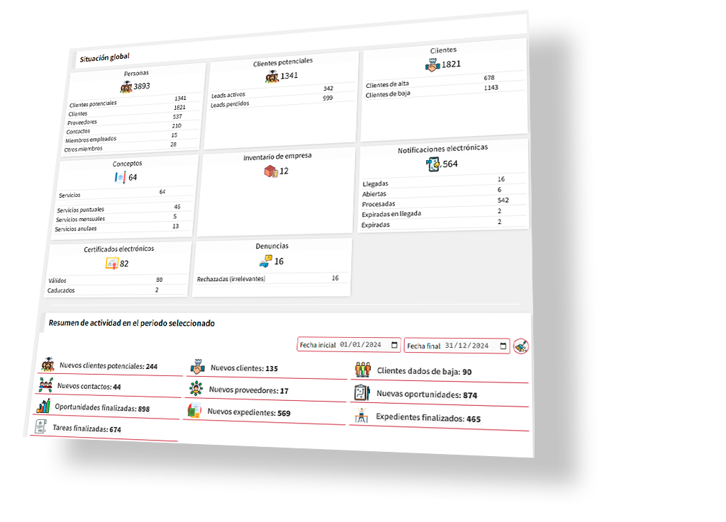 Aprovecha nuestros avanzados Cuadros de Mando que recopilan la información y la muestran de manera práctica y tremendamente fácil de entender, para que puedas tomar las decisiones más útiles que harán crecer tu negocio.