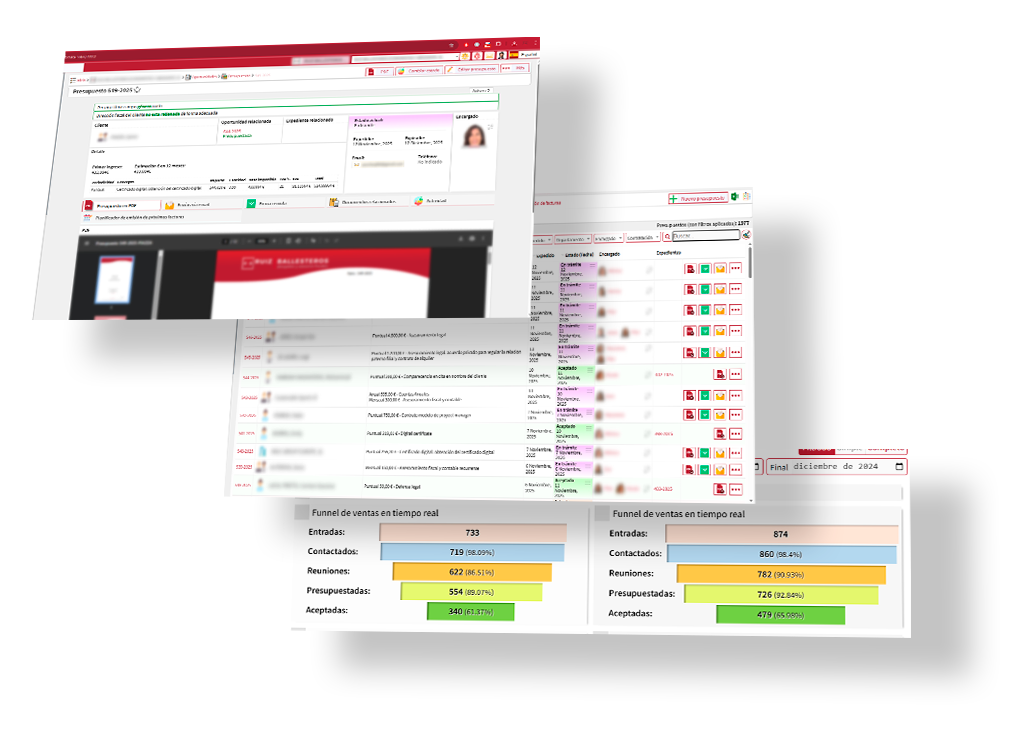 Gestiona y Controla todo el ciclo comercial, desde la entrada de una Oportunidad de negocio hasta la aceptación del presupuesto. Crea y envía presupuestos en segundos, controla y envía sin salir del programa, no tienes que traspasar nada a PDF ni abrir Outlook para enviarlos. Dispones de reenvíos automáticos para aumentar tus ventas hasta aceptación o rechazo de presupuesto y obtén estadísticas de todo.