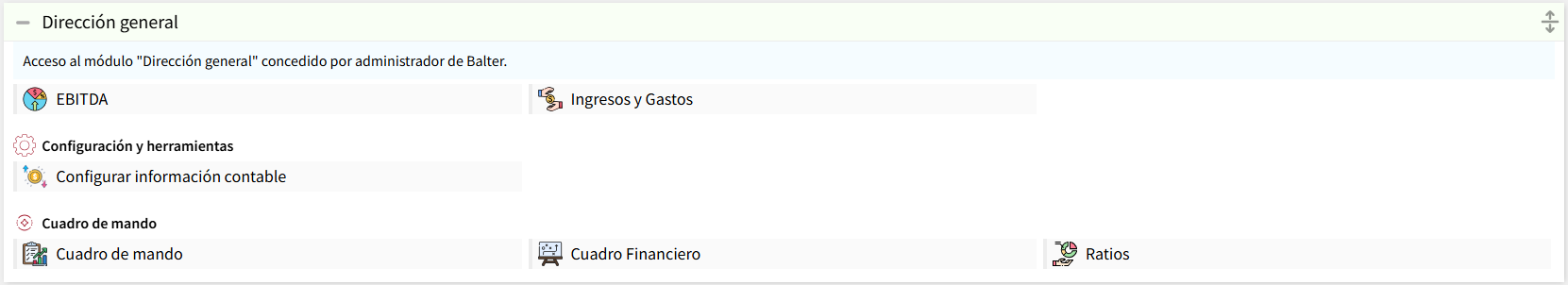 El módulo de Dirección General de BALTER, desarrollado y utilizado en colaboración con nuestros partners especializados, te ofrece toda la información necesaria para dirigir, analizar y proyectar el crecimiento de tu organización con precisión y transparencia.