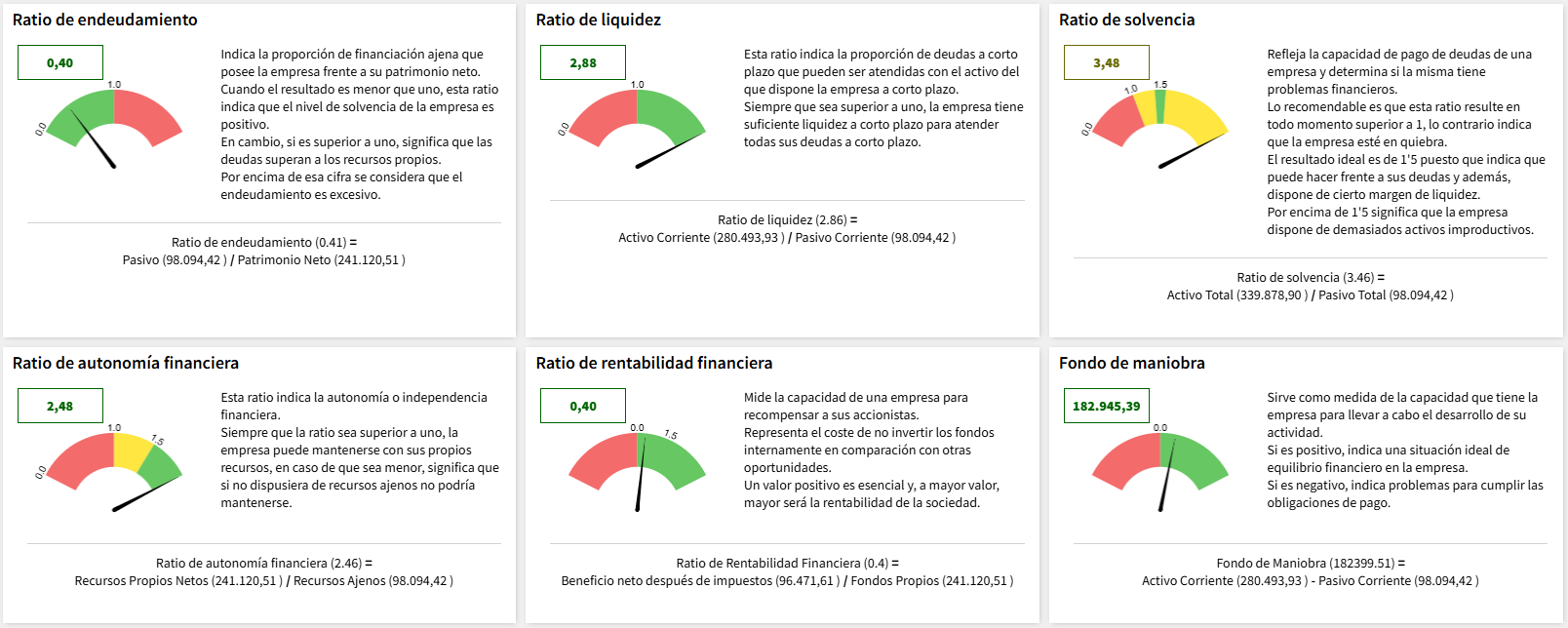 Accede a los principales indicadores de liquidez, solvencia, endeudamiento y rentabilidad.