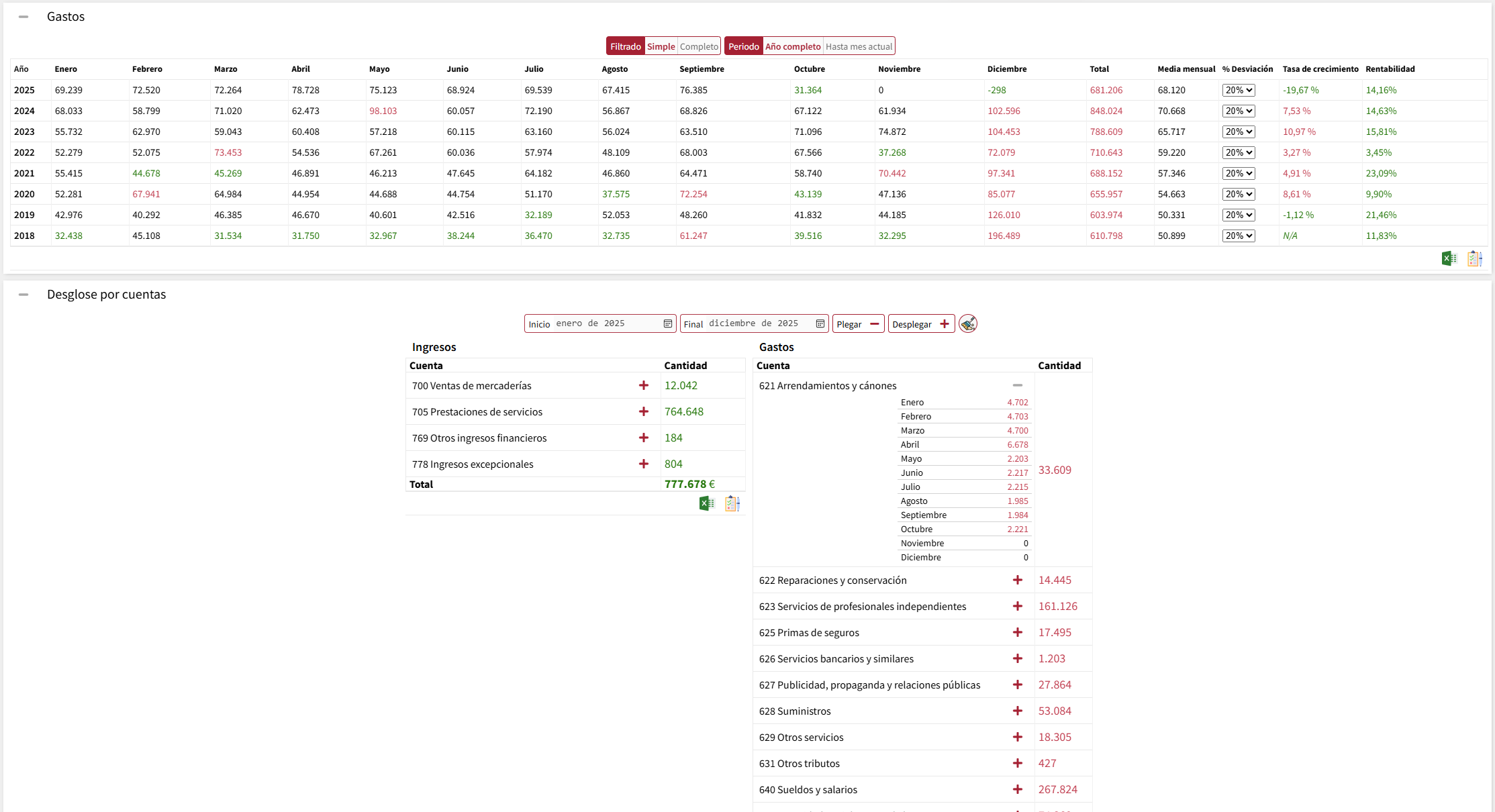 Detecta desviaciones, compara resultados con ejercicios anteriores y mide la evolución financiera de tu actividad.